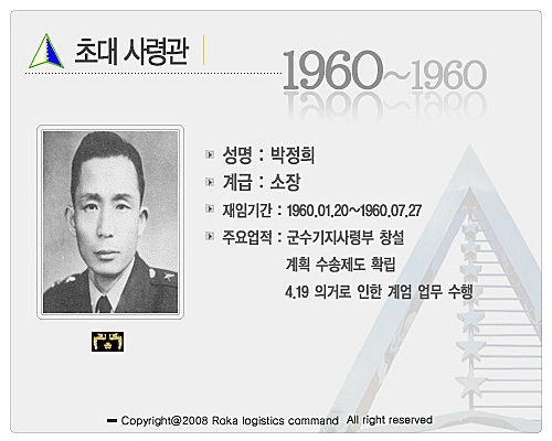 국부 이승만박사께서 하야하시게 되는 1960년 1월에 국부께서 대한민국에 많은 유산과 유지를 남기셨는데, 그 중에 하나가 바로 부산에 최초로 군수기지사령부가 창설되면서 초대 사령관에 박정희소장을 임명한 것입니다.