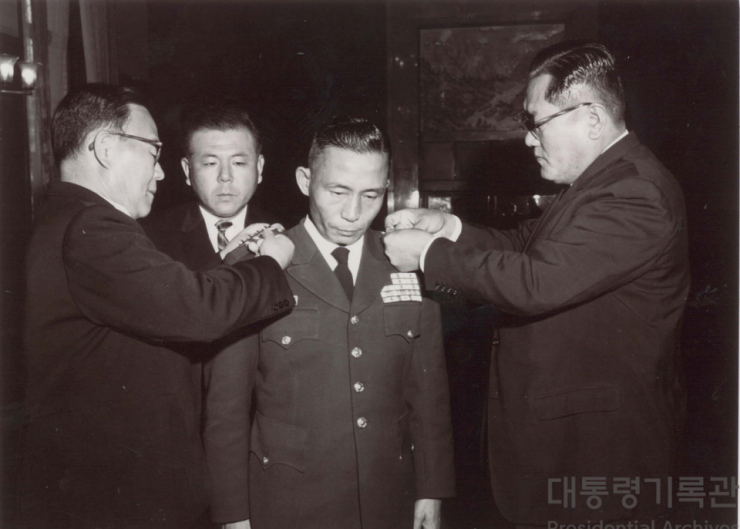 사진 : 1961년 11월 4일(금) 윤보선대통령과 송요찬내각수반이 대장 계급장 달아주는 모습