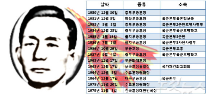 사진 : 군인 박정희의 훈장 수훈 명단, 맨 처음이 바로 군수물자수송업무 지휘로 충무무공훈장