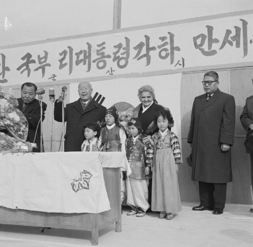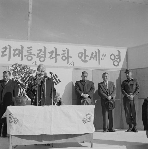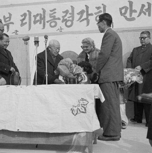 1957년 11월 군산과 장항을 방문하셨는데, 전라도 백성들이 환영식 현수막에 기록한 호칭도 국부였습니다.