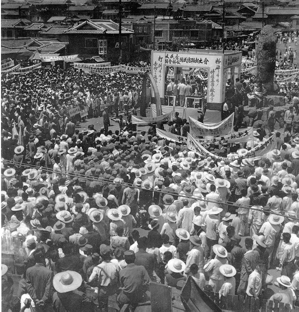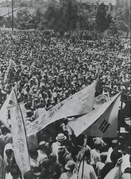 사진 6 : 1950년 5월 19일 국회의원 소환 시위.애국국민들은 태극기집회를 개최하여 "국회의원들을 성토하고, 국회해산" 시위를 했습니다.