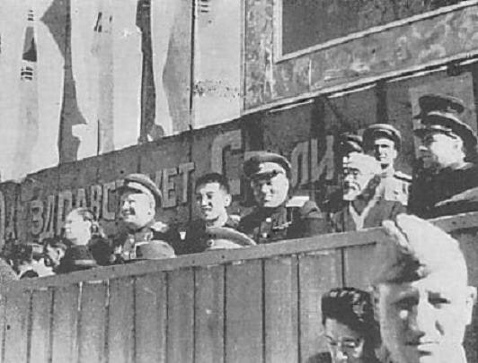 스티코프가 부랴부랴 김성주를 김일성장군으로 10월 14일(화) 소련군 환영대회를 열어 등장시킴.